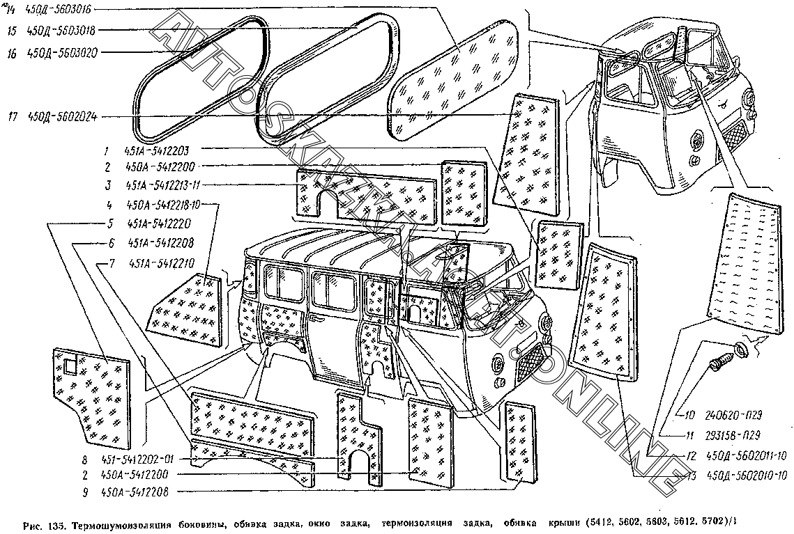 Термошумоизоляция боковины, обивка задка, окно задка, термоизоляция задка, обивка крыши (5412, 5602, 5603, 5612, 5702)/1 УАЗ 3741