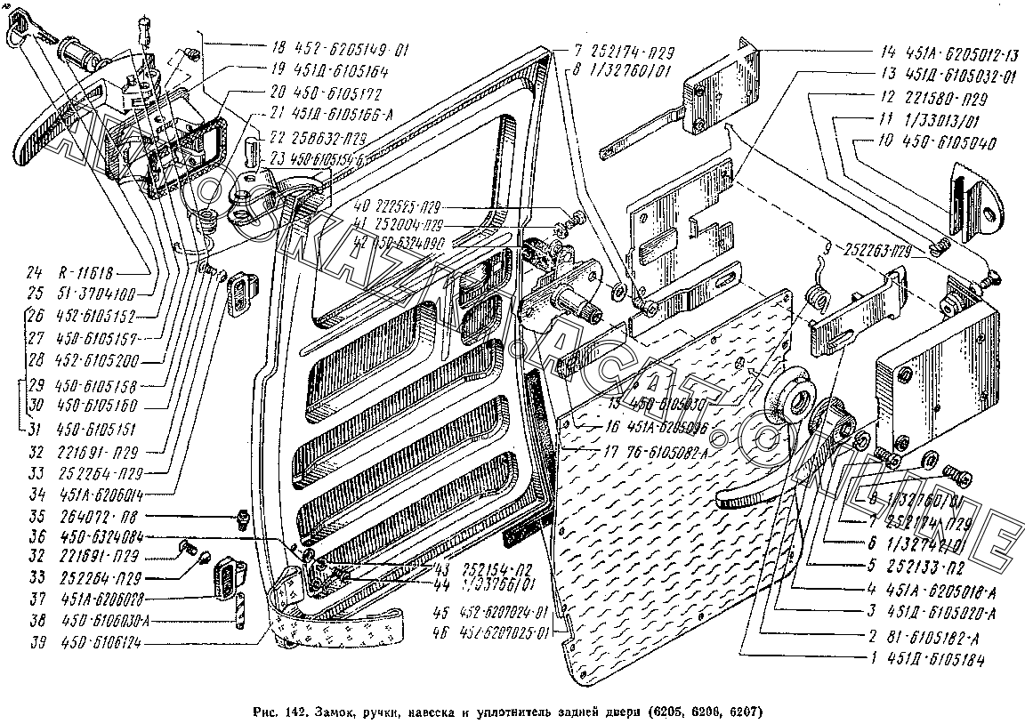 Замок, ручки, навеска и уплотнитель задней двери (6205, 6206,6207) УАЗ 3741