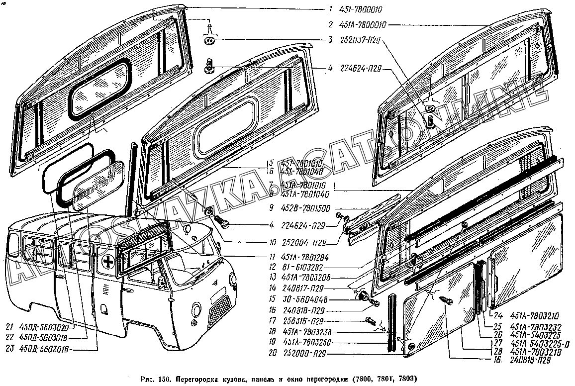 Перегородка кузова, панель и окно перегородки (7800, 7801, 7803) УАЗ 3741