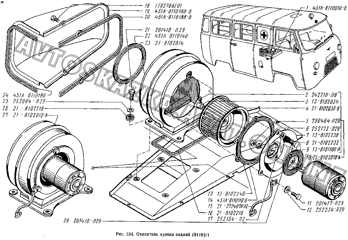 Отопитель кузова задний (8110)/1 УАЗ 3741