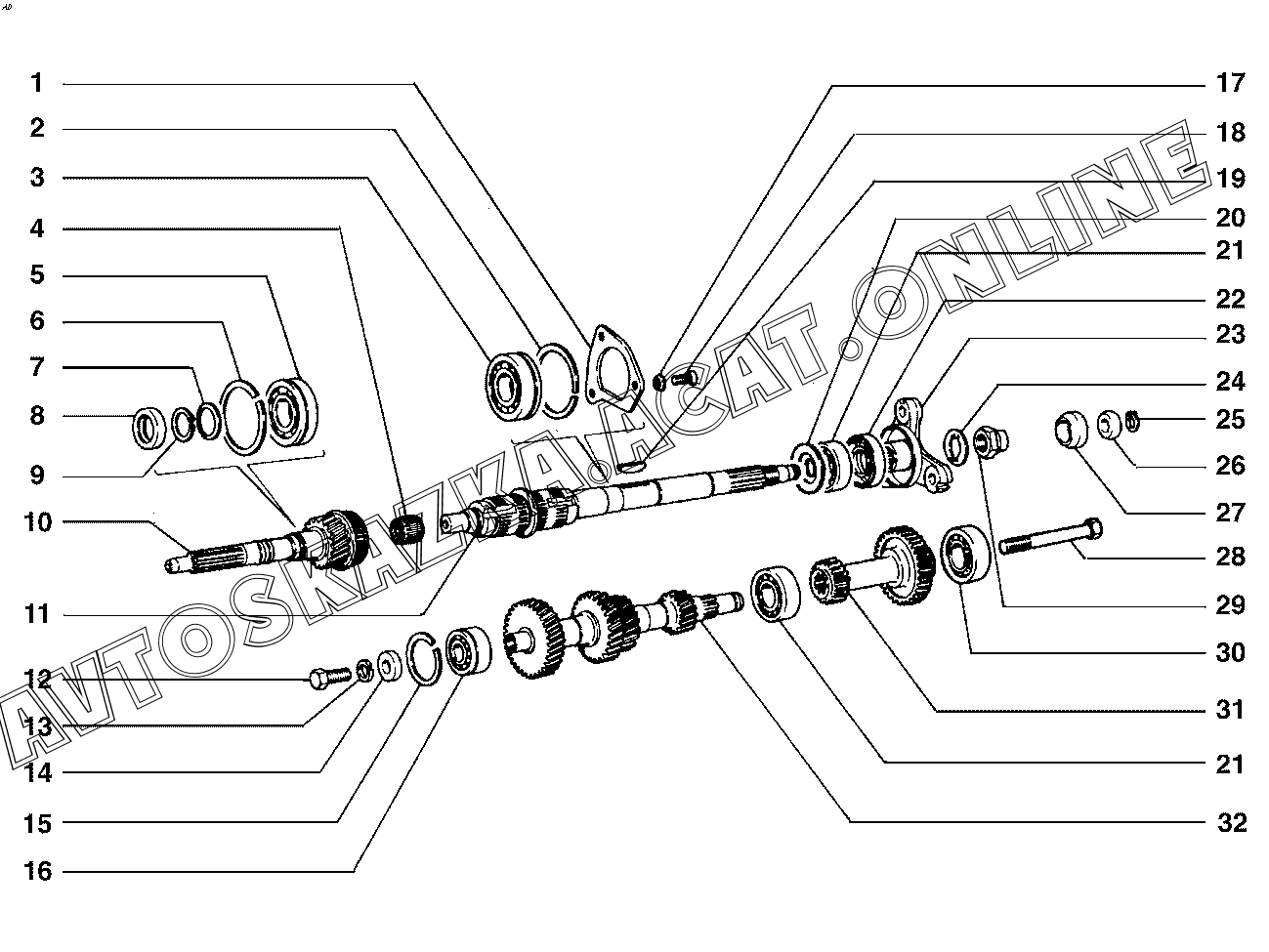 Валы коробки передач (5) ВАЗ 2104 (21040, 21043, 21044, 21045, 21046, 21047)