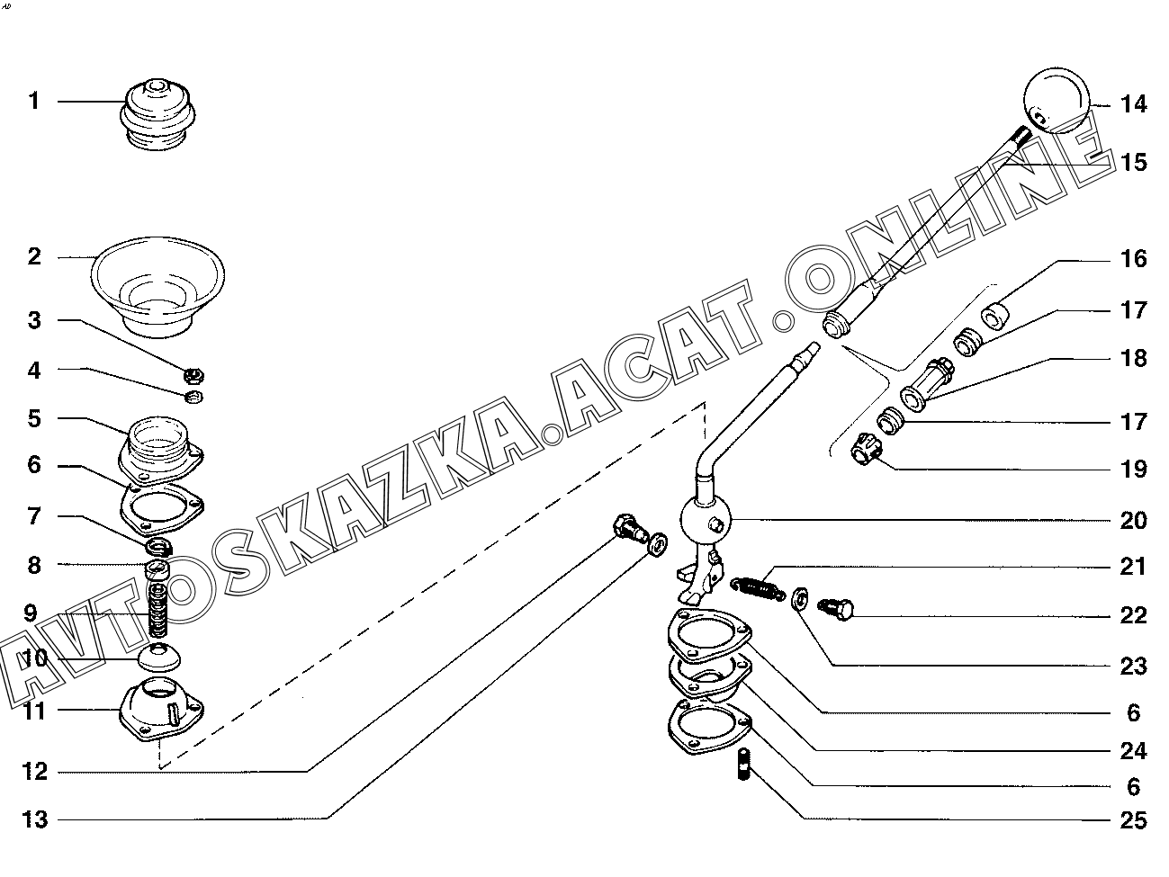 Привод механизма переключения передач (4) ВАЗ 2104 (21040, 21043, 21044, 21045, 21046, 21047)