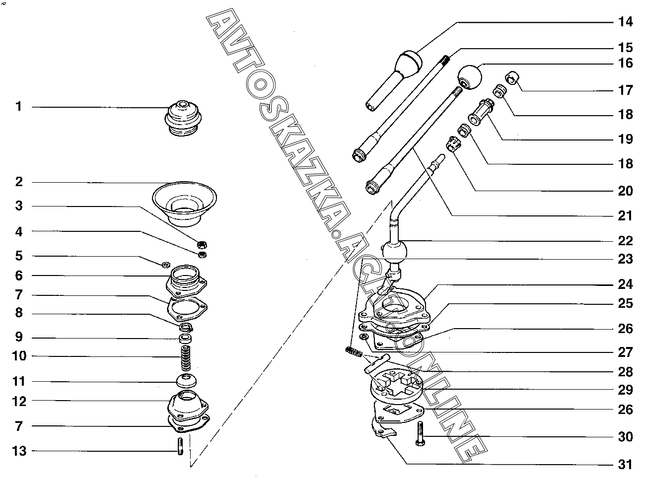 Привод механизма переключения передач (5) ВАЗ 2104 (21040, 21043, 21044, 21045, 21046, 21047)