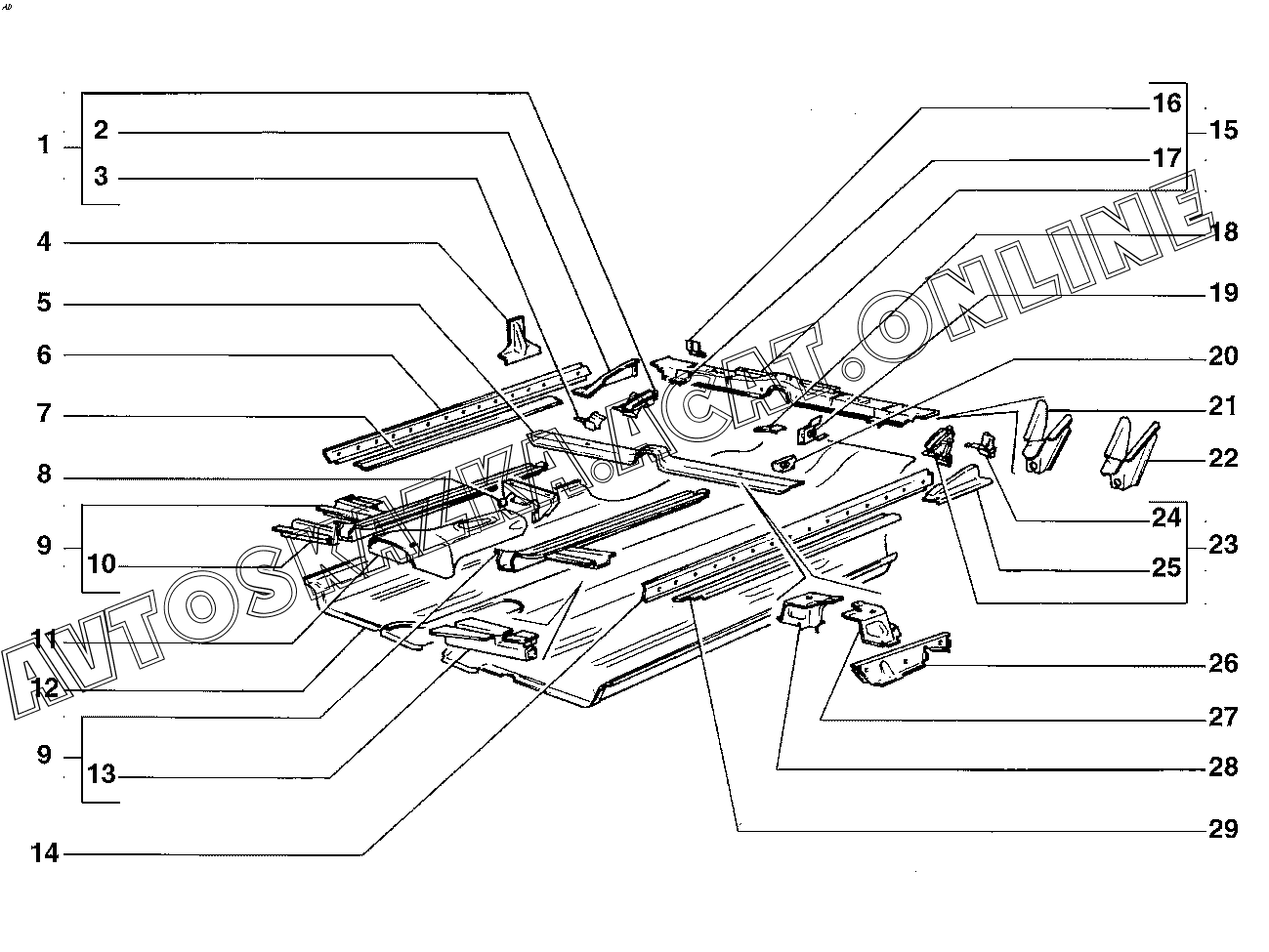 Пол кузова передний ВАЗ 2104 (21040, 21043, 21044, 21045, 21046, 21047)