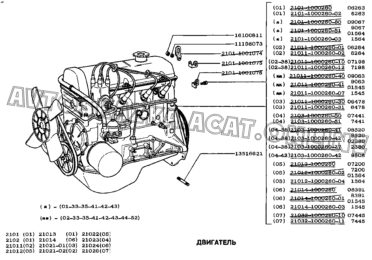 1 - для автомобилей ВАЗ-2101, 2102 и их модификаций