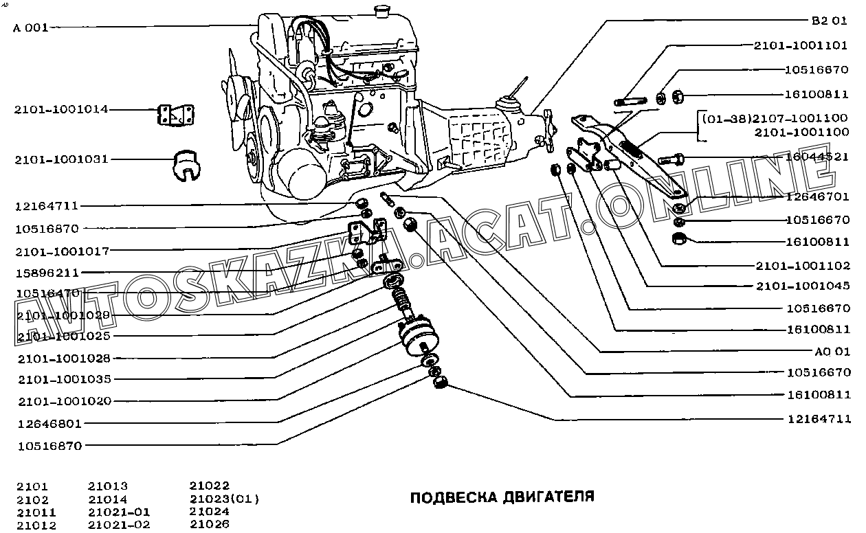 Подвеска двигателя ВАЗ 2101 (21011, 21012, 21013, 21014)