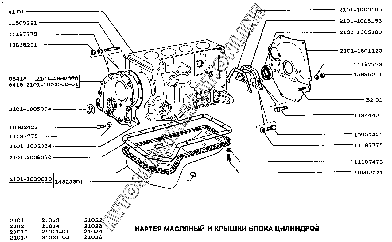 Картер масляный и крышки блока ВАЗ 2101 (21011, 21012, 21013, 21014)