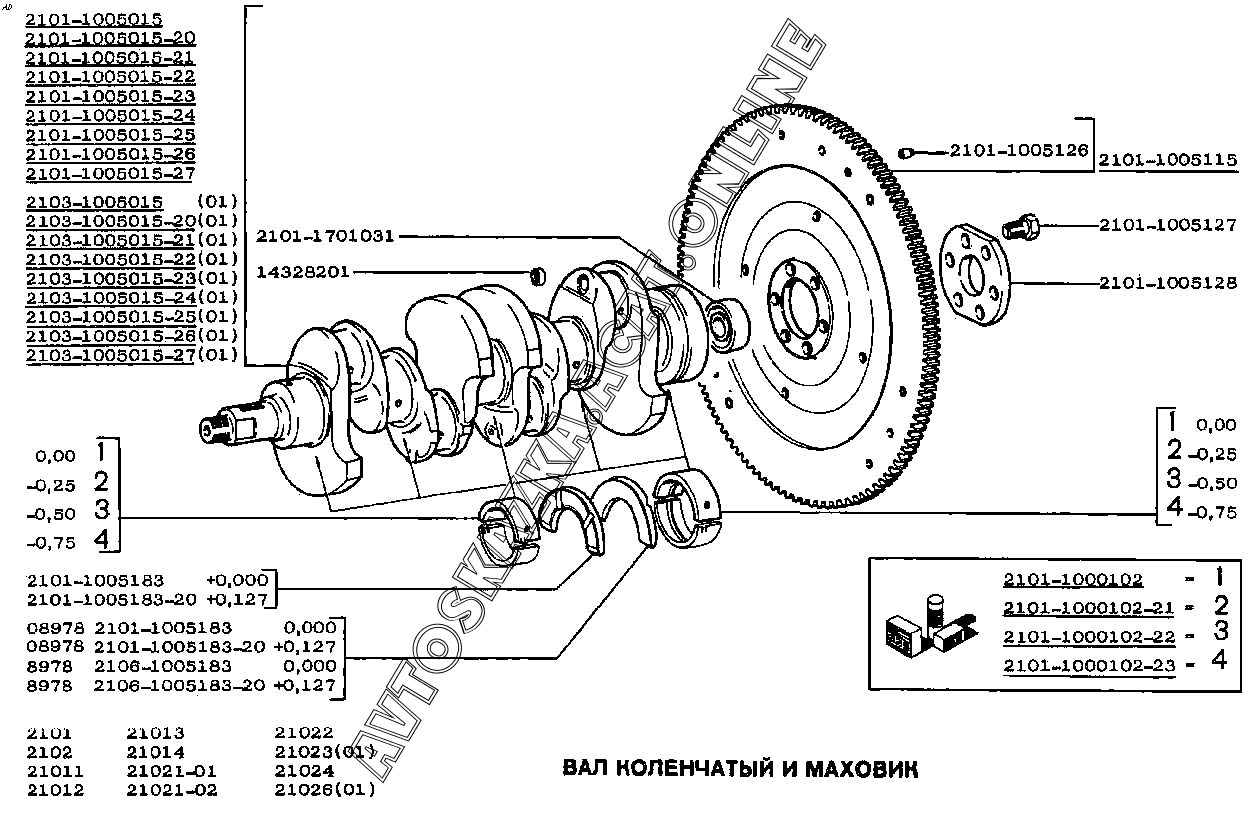 Вал коленчатый и маховик ВАЗ 2101 (21011, 21012, 21013, 21014)