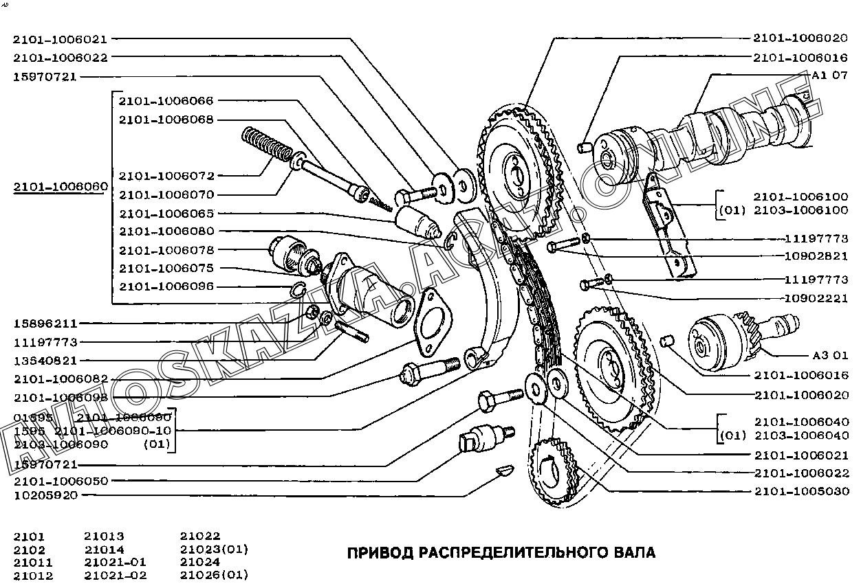 Привод распределительного вала ВАЗ 2101 (21011, 21012, 21013, 21014)