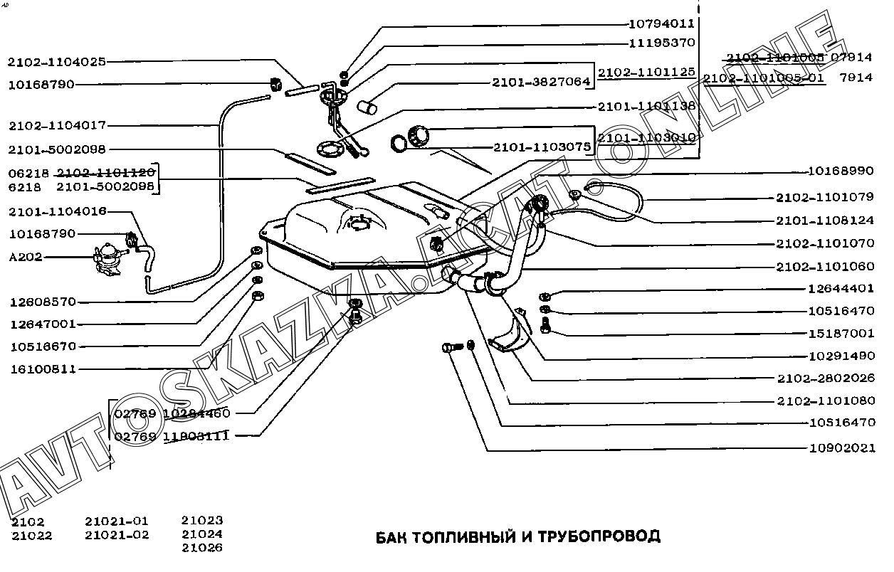 Бак топливный и трубопровод ВАЗ 2101 (21011, 21012, 21013, 21014)