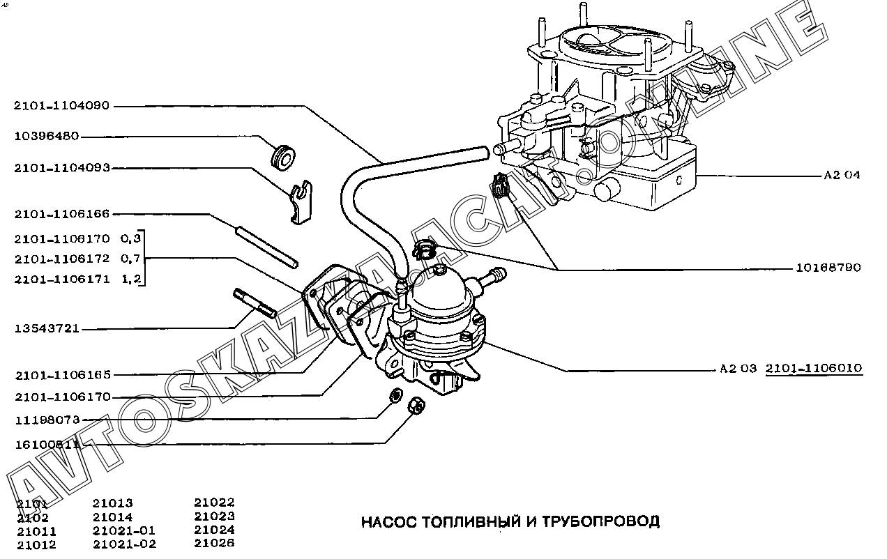 Насос топливный и трубопровод ВАЗ 2101 (21011, 21012, 21013, 21014)