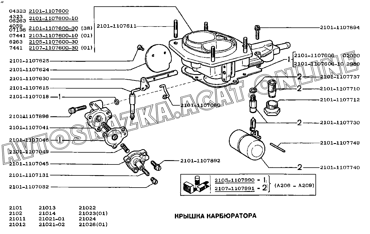 1 - для автомобилей ВАЗ-2101, 2102 и их модификаций
