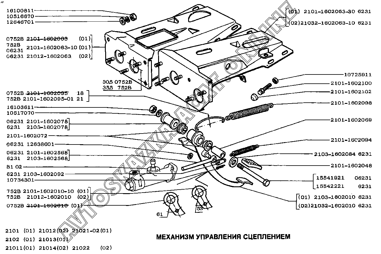 Механизм управления сцеплением ВАЗ 2101 (21011, 21012, 21013, 21014)