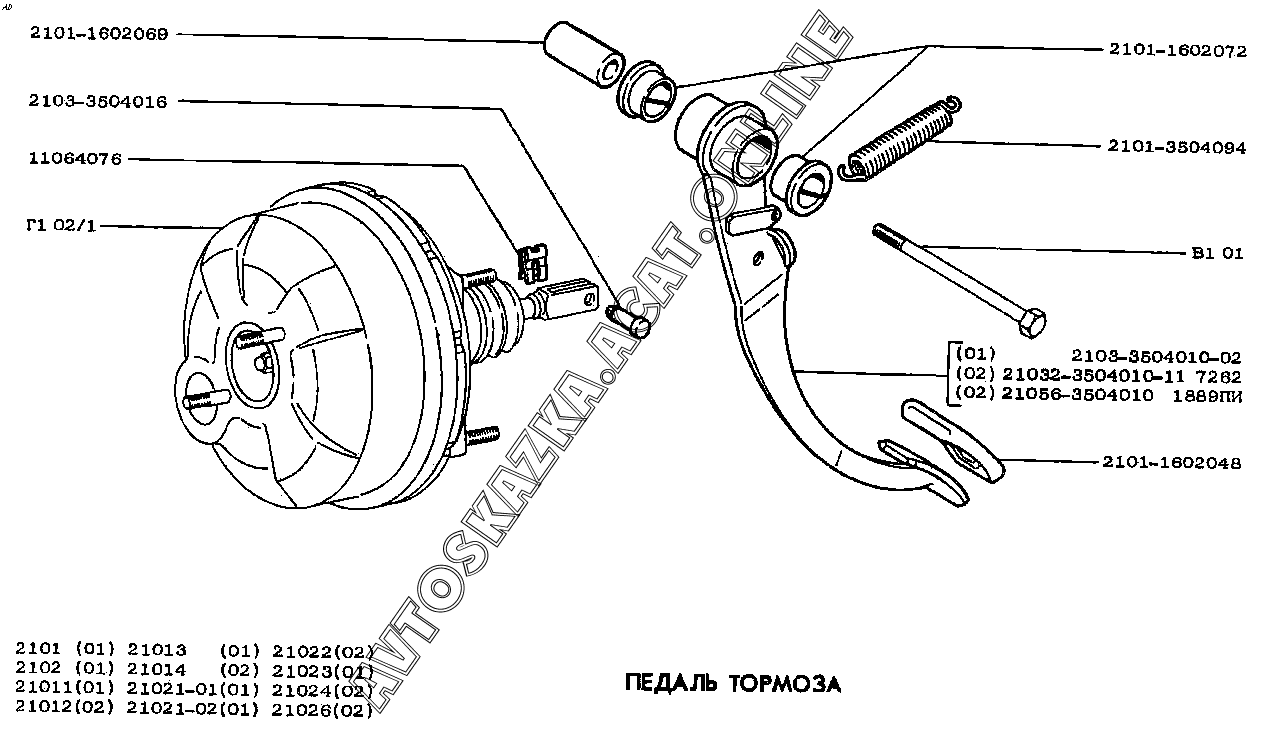 Педаль тормоза и привод ВАЗ 2101 (21011, 21012, 21013, 21014)