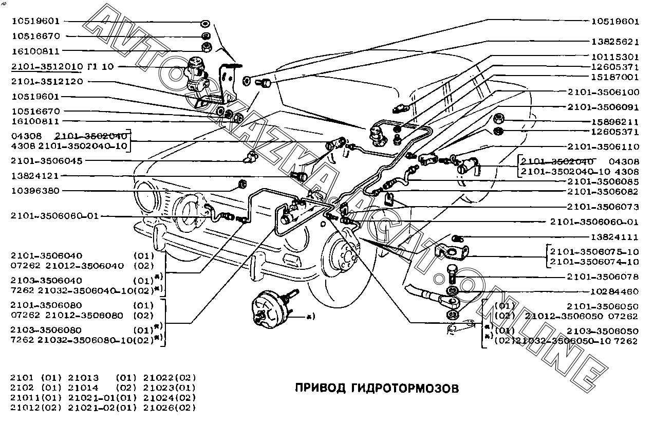 Система гидротормозов ВАЗ 2101 (21011, 21012, 21013, 21014)