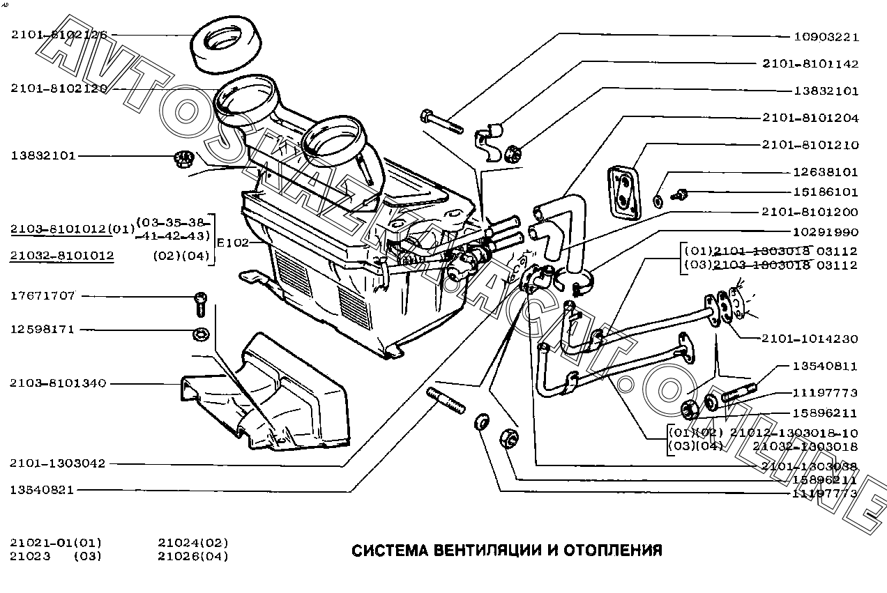 Система вентиляции и отопления ВАЗ 2101 (21011, 21012, 21013, 21014)