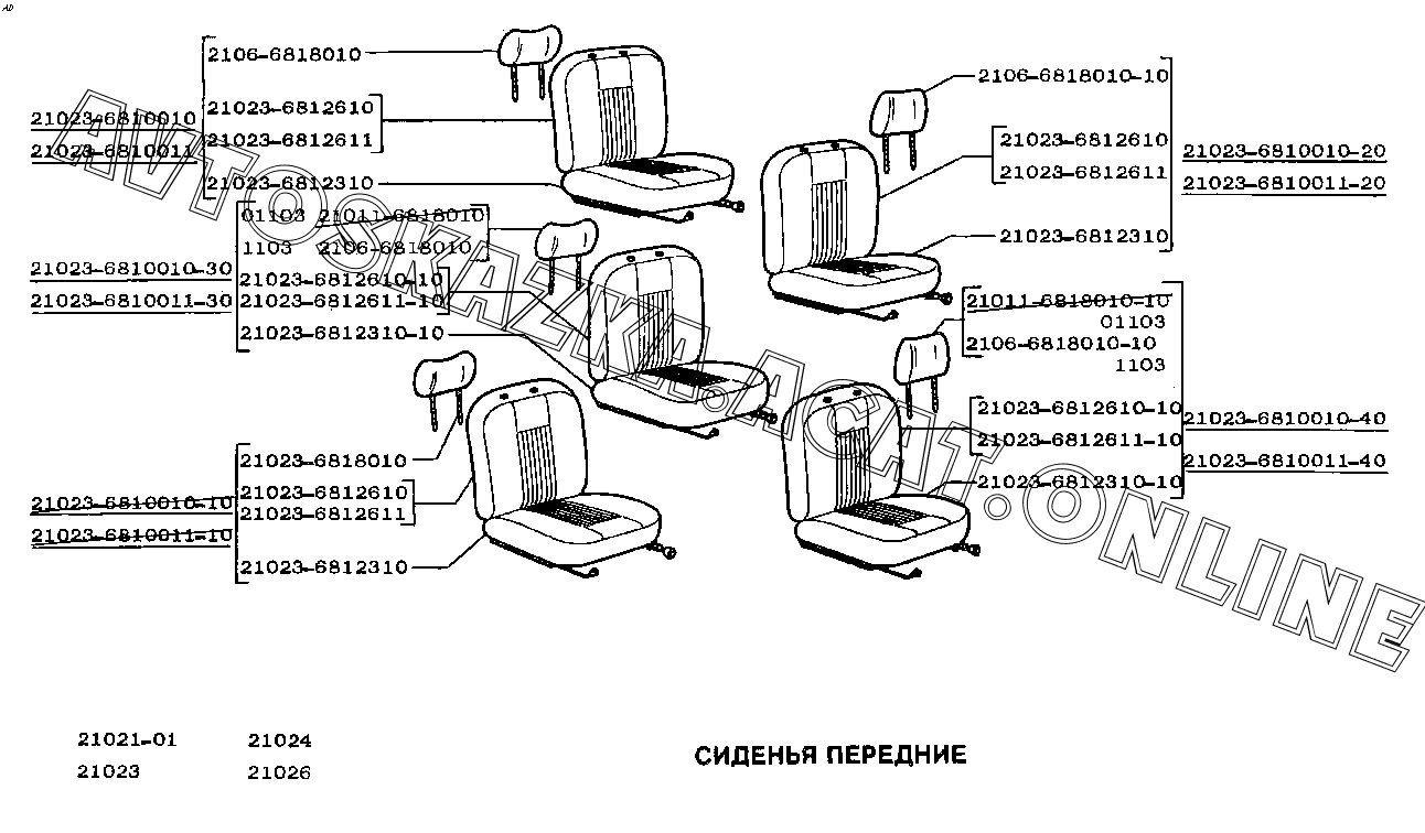 Сиденья передние ВАЗ 2101 (21011, 21012, 21013, 21014)