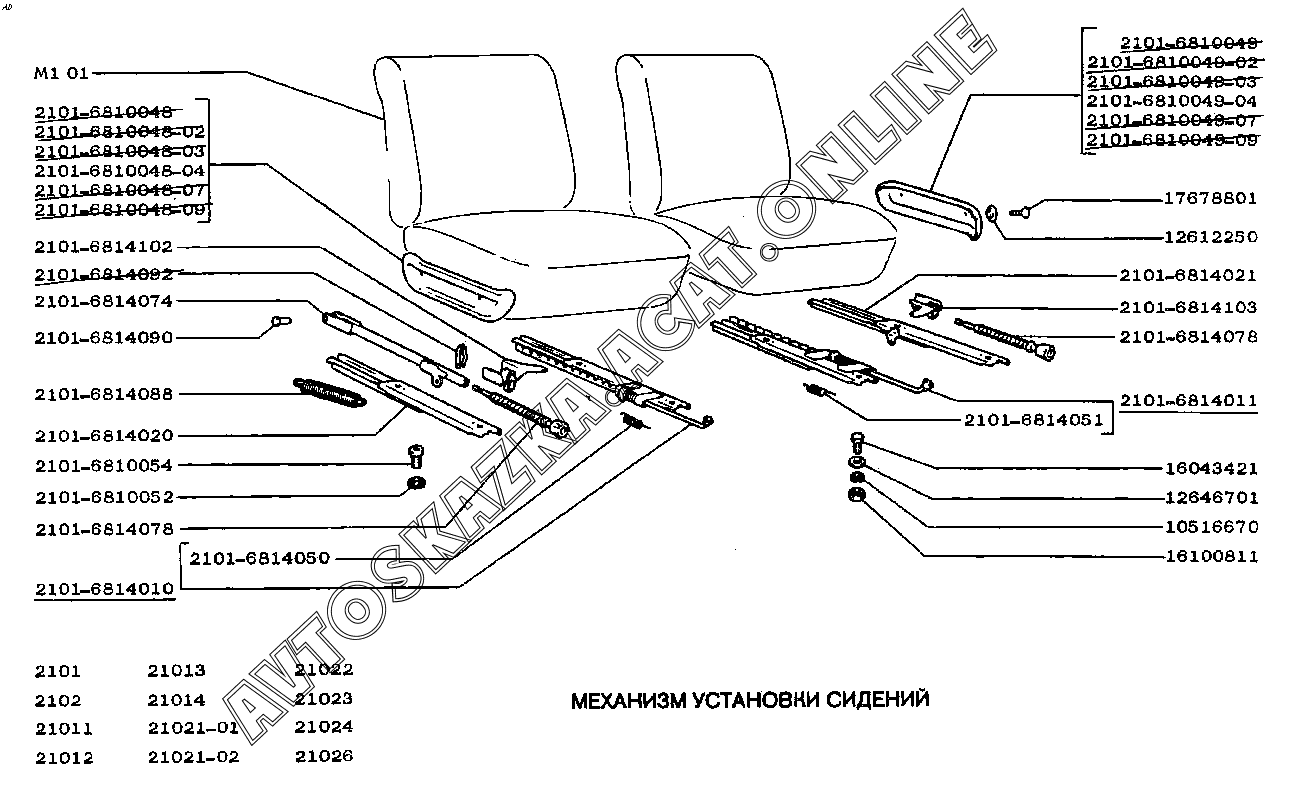 Механизм установки сидений ВАЗ 2101 (21011, 21012, 21013, 21014)