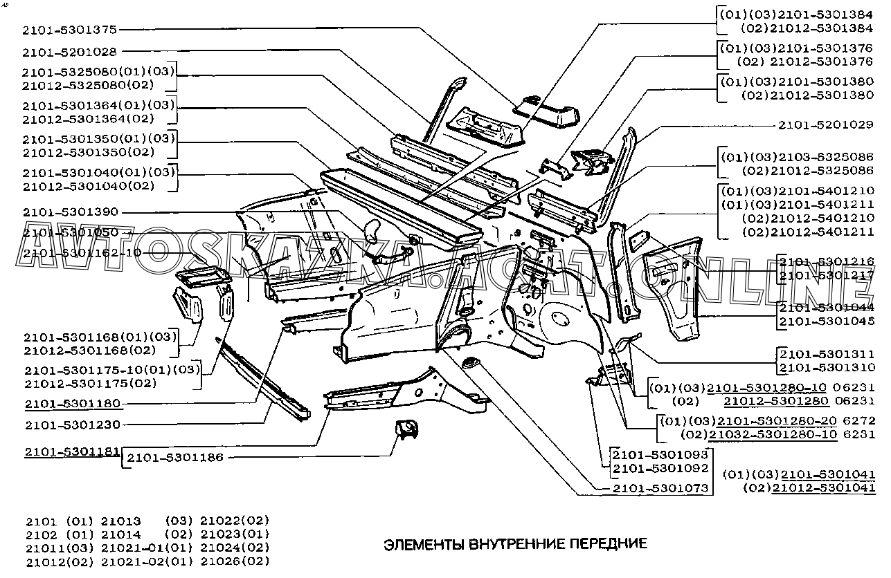Элементы внутренние передние ВАЗ 2101 (21011, 21012, 21013, 21014)
