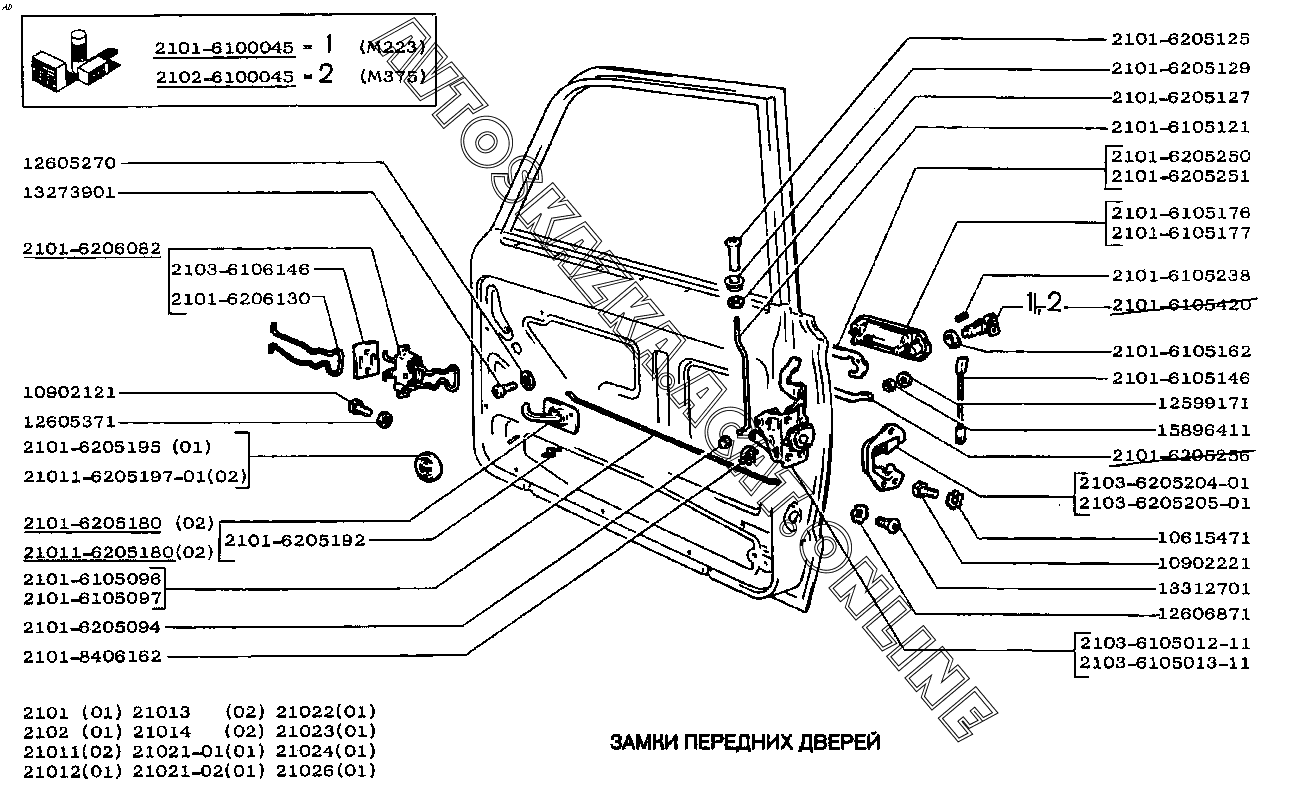Замки передних дверей ВАЗ 2101 (21011, 21012, 21013, 21014)