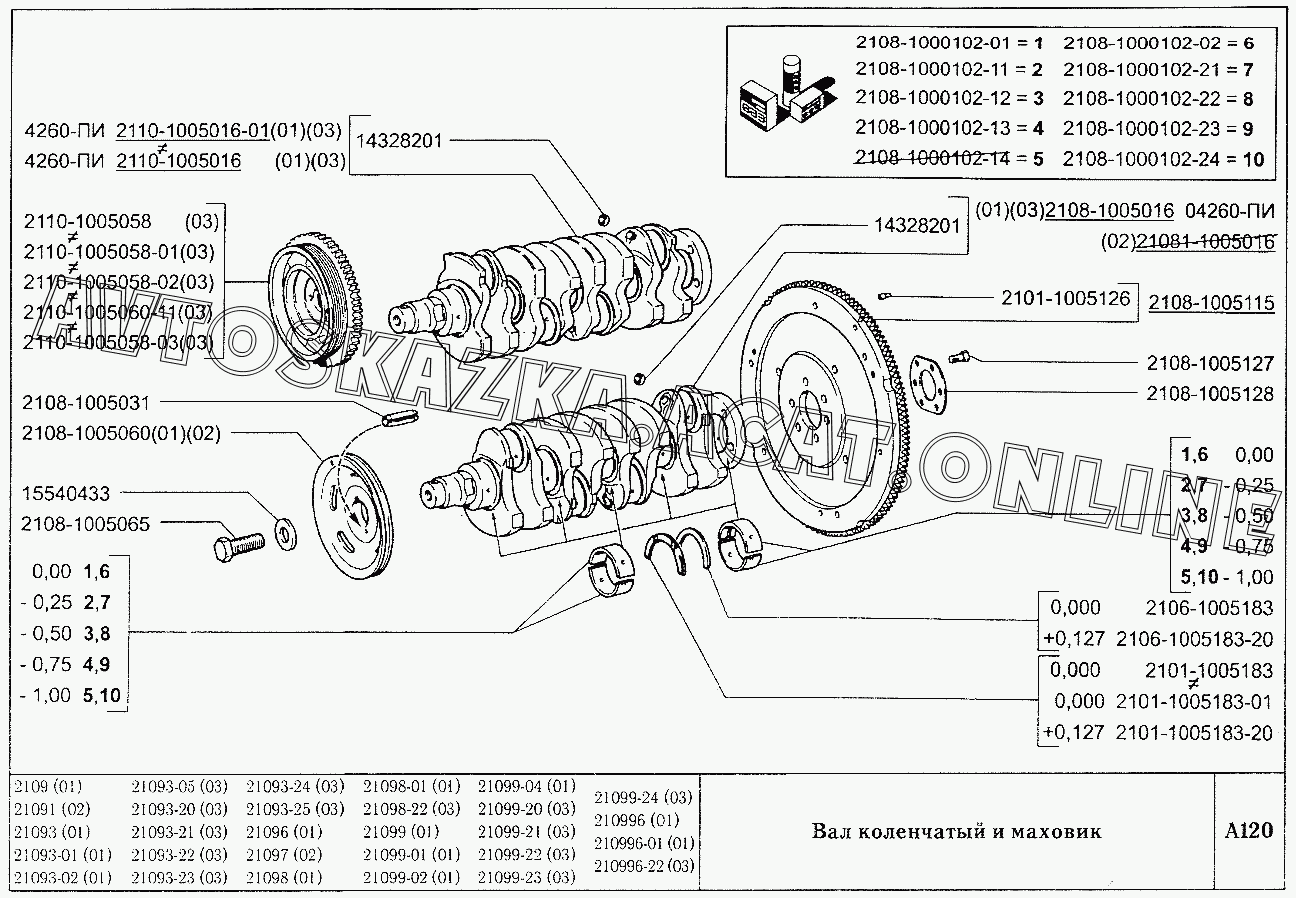 Вал коленчатый и маховик ВАЗ 2109 (2109, 21091, 21093, 21093-01, 21093-02, 21093-05, 21096, 21097, 21098, 21098-01 (карб.), 21093-20, 21093-21, 21093-22, 21093-23, 21093-24, 21093-25, 21098-22 (впрыск))