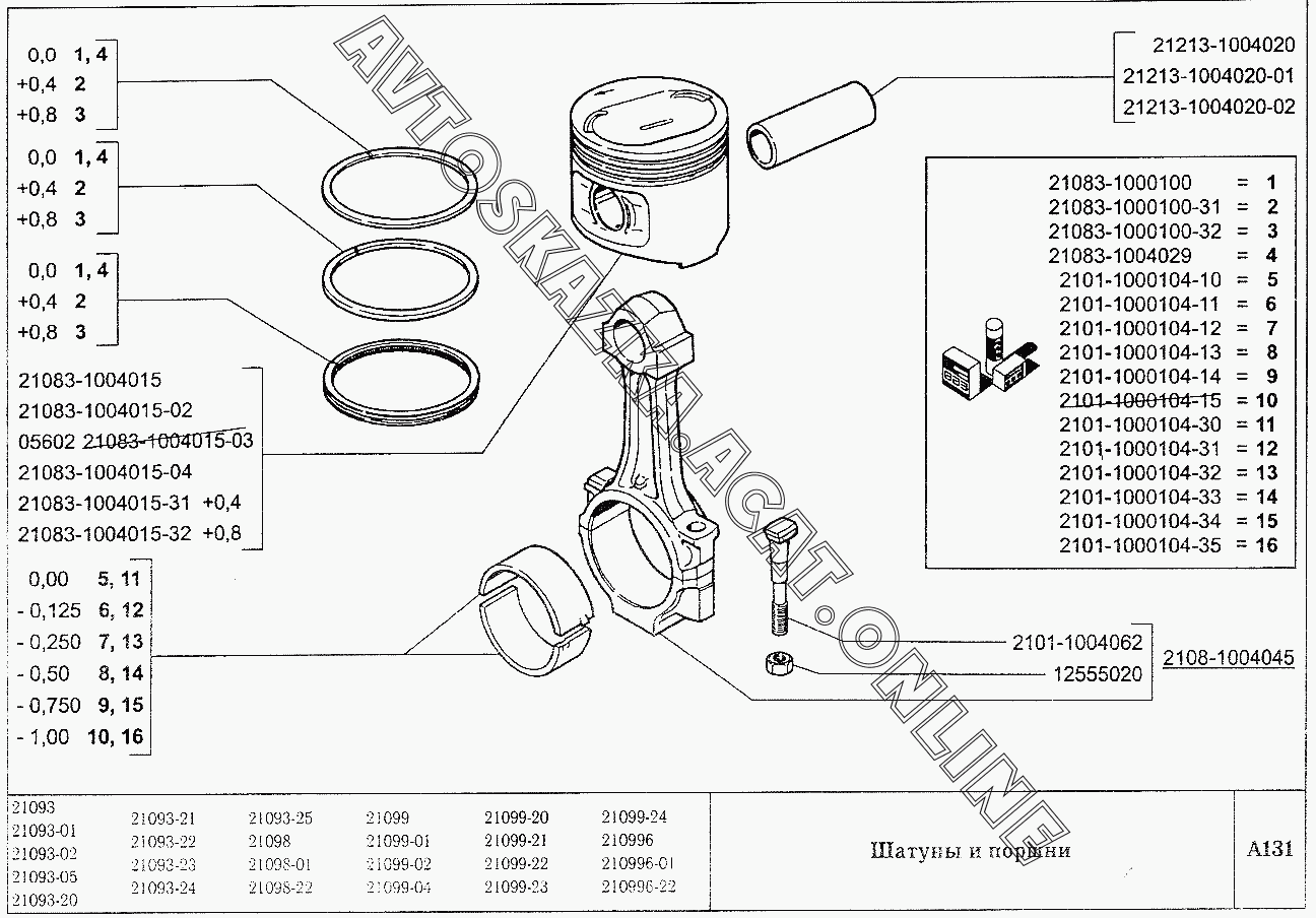 Шатуны и поршни ВАЗ 2109 (2109, 21091, 21093, 21093-01, 21093-02, 21093-05, 21096, 21097, 21098, 21098-01 (карб.), 21093-20, 21093-21, 21093-22, 21093-23, 21093-24, 21093-25, 21098-22 (впрыск))