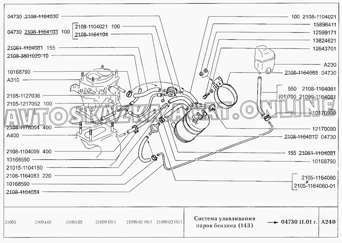 Система улавливания паров бензина (143) ВАЗ 2109 (2109, 21091, 21093, 21093-01, 21093-02, 21093-05, 21096, 21097, 21098, 21098-01 (карб.), 21093-20, 21093-21, 21093-22, 21093-23, 21093-24, 21093-25, 21098-22 (впрыск))