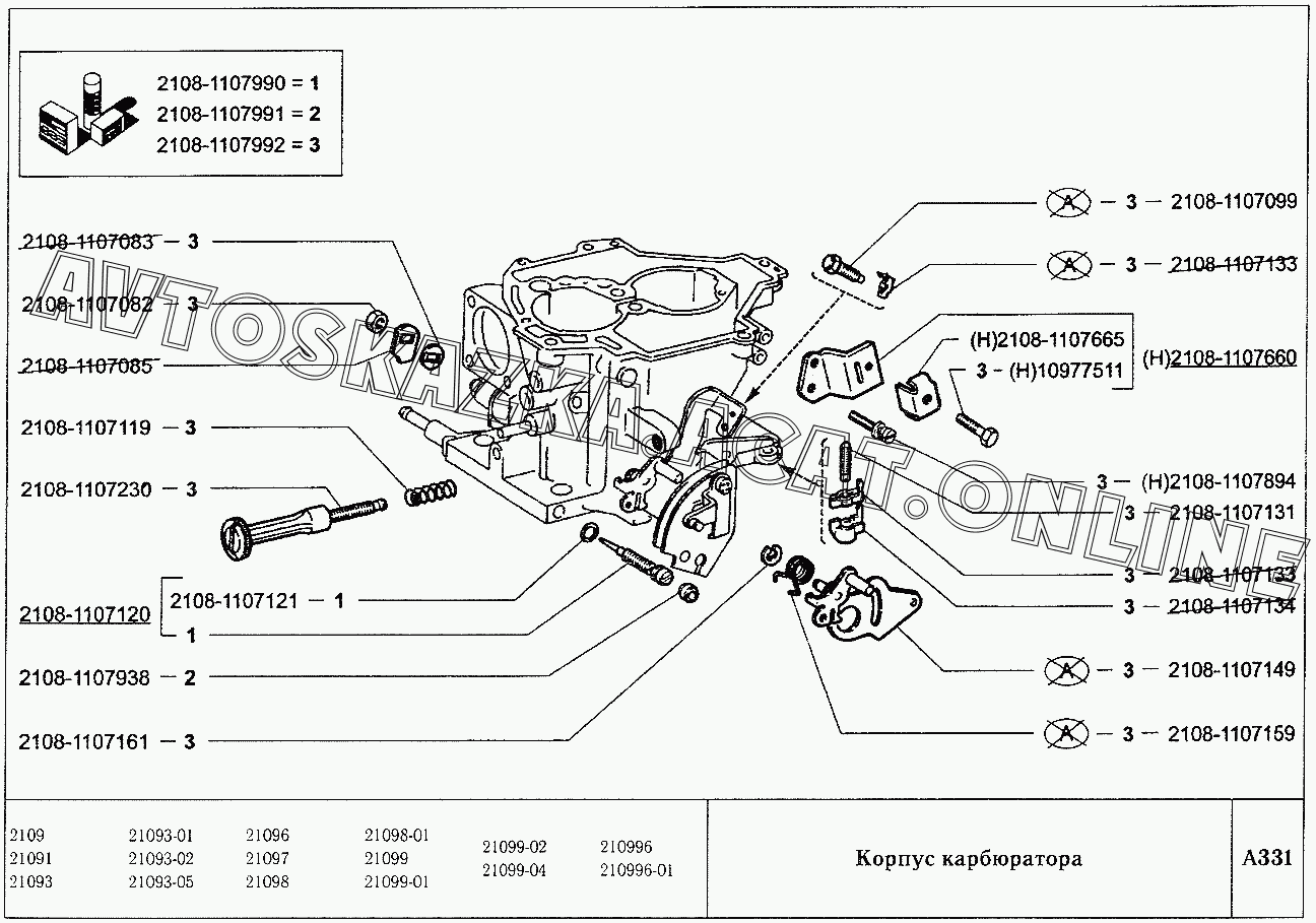 Корпус карбюратора ВАЗ 2109 (2109, 21091, 21093, 21093-01, 21093-02, 21093-05, 21096, 21097, 21098, 21098-01 (карб.), 21093-20, 21093-21, 21093-22, 21093-23, 21093-24, 21093-25, 21098-22 (впрыск))