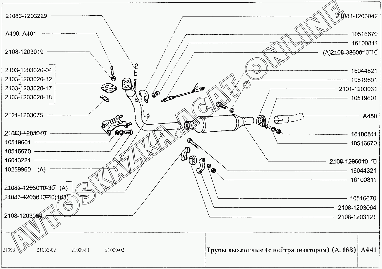 Трубы выхлопные (с нейтрализатором) (А,163) ВАЗ 2109 (2109, 21091, 21093, 21093-01, 21093-02, 21093-05, 21096, 21097, 21098, 21098-01 (карб.), 21093-20, 21093-21, 21093-22, 21093-23, 21093-24, 21093-25, 21098-22 (впрыск))