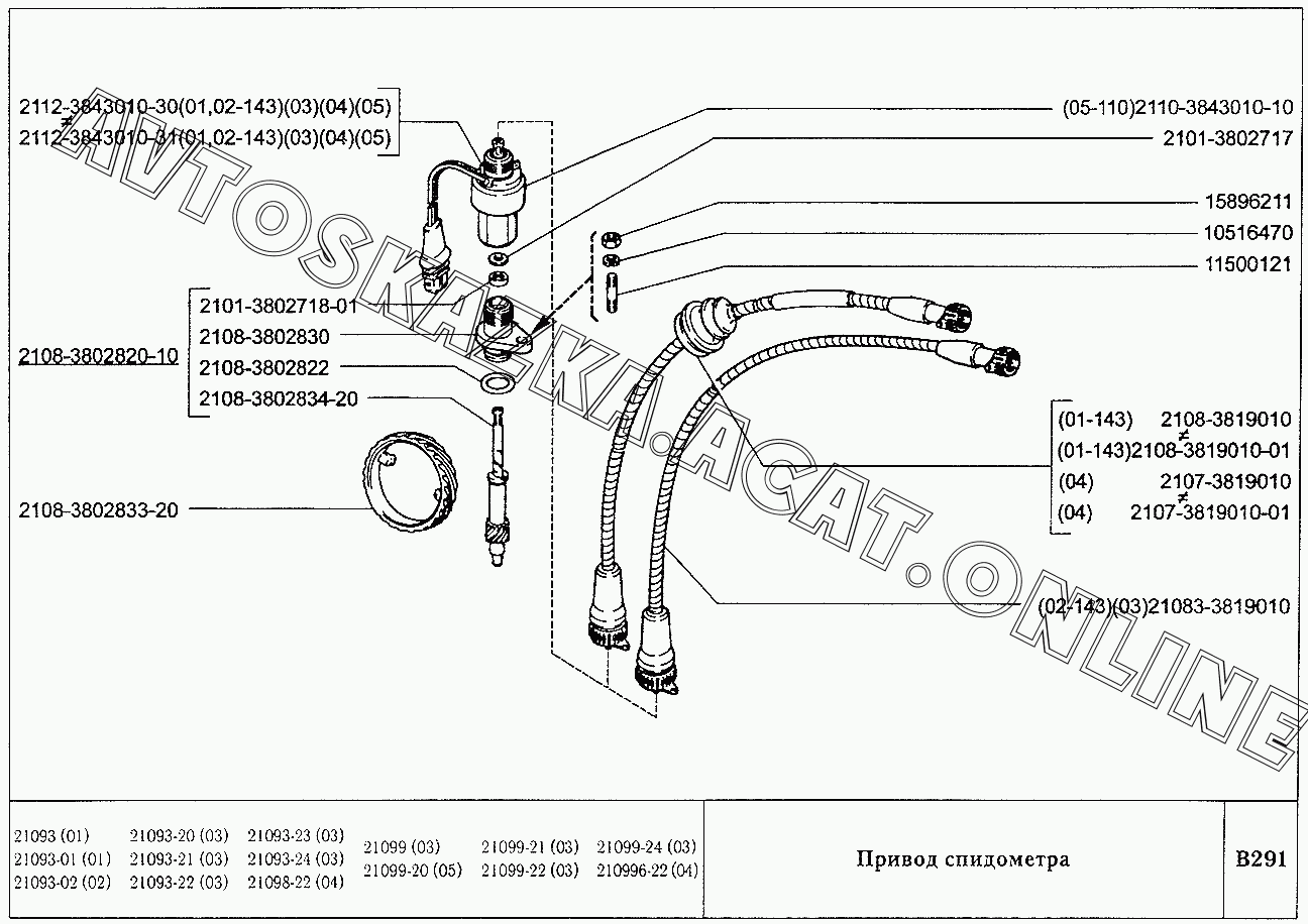 Привод спидометра ВАЗ 2109 (2109, 21091, 21093, 21093-01, 21093-02, 21093-05, 21096, 21097, 21098, 21098-01 (карб.), 21093-20, 21093-21, 21093-22, 21093-23, 21093-24, 21093-25, 21098-22 (впрыск))