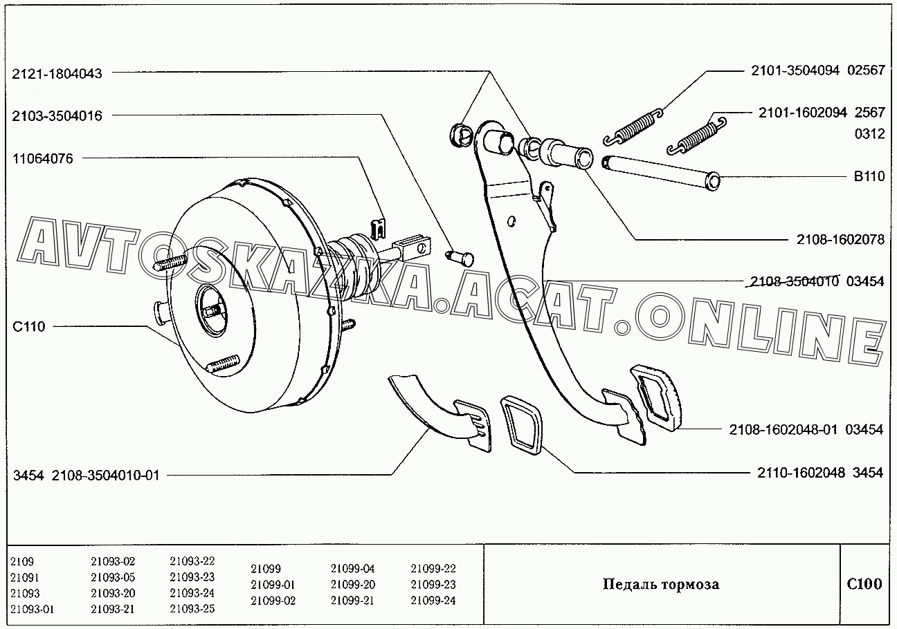 Педаль тормоза ВАЗ 2109 (2109, 21091, 21093, 21093-01, 21093-02, 21093-05, 21096, 21097, 21098, 21098-01 (карб.), 21093-20, 21093-21, 21093-22, 21093-23, 21093-24, 21093-25, 21098-22 (впрыск))