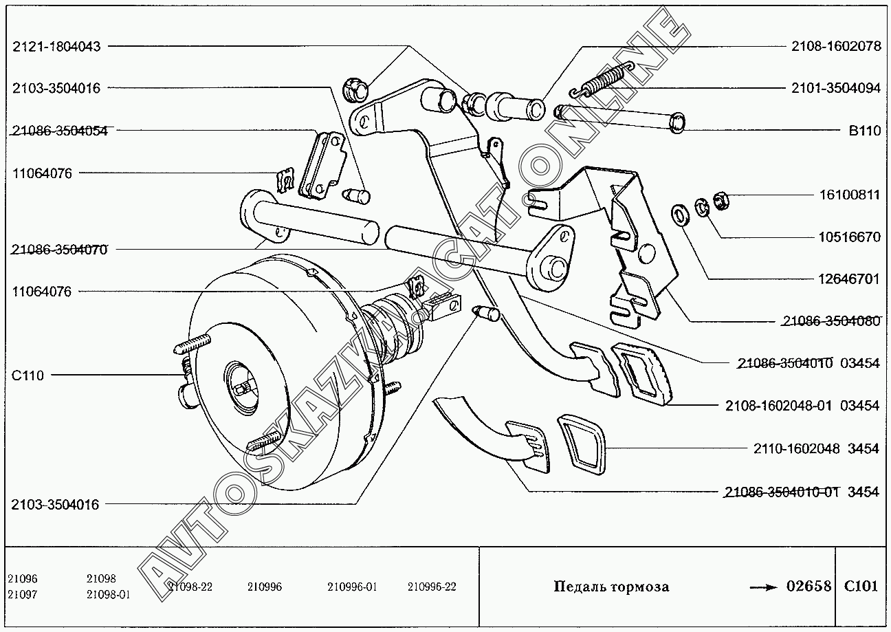 Педаль тормоза ВАЗ 2109 (2109, 21091, 21093, 21093-01, 21093-02, 21093-05, 21096, 21097, 21098, 21098-01 (карб.), 21093-20, 21093-21, 21093-22, 21093-23, 21093-24, 21093-25, 21098-22 (впрыск))