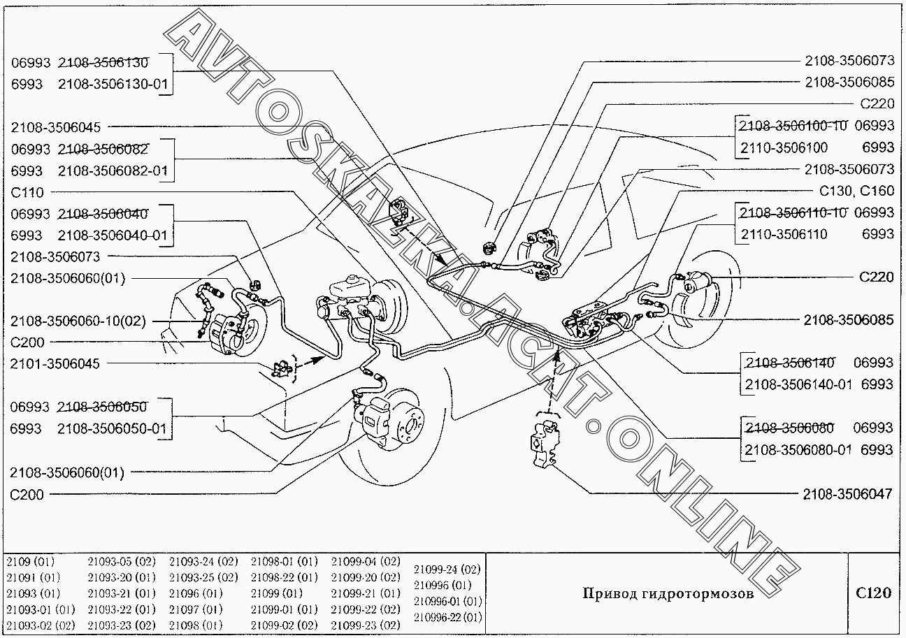 Привод гидротормозов ВАЗ 2109 (2109, 21091, 21093, 21093-01, 21093-02, 21093-05, 21096, 21097, 21098, 21098-01 (карб.), 21093-20, 21093-21, 21093-22, 21093-23, 21093-24, 21093-25, 21098-22 (впрыск))