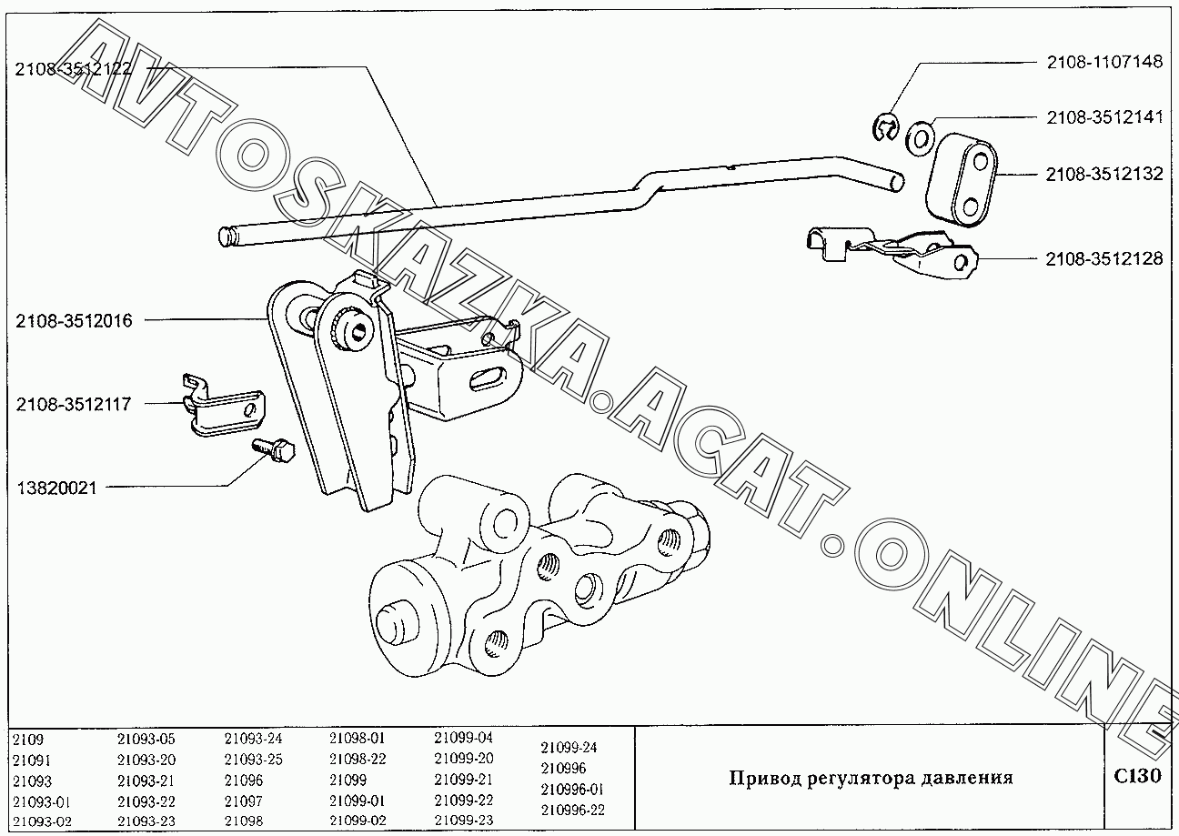 Привод регулятора давления ВАЗ 2109 (2109, 21091, 21093, 21093-01, 21093-02, 21093-05, 21096, 21097, 21098, 21098-01 (карб.), 21093-20, 21093-21, 21093-22, 21093-23, 21093-24, 21093-25, 21098-22 (впрыск))