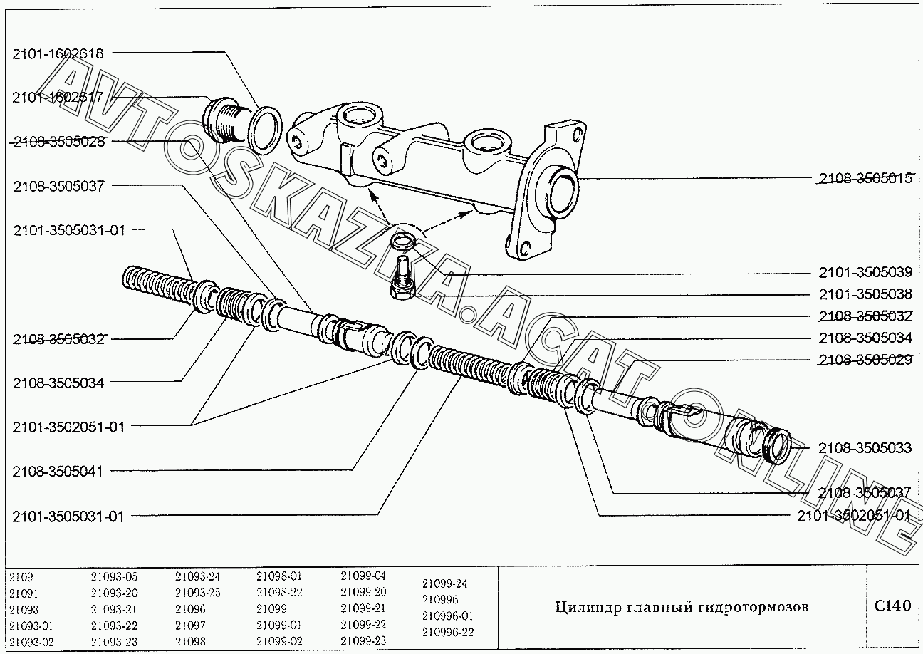 Цилиндр главный гидротормозов ВАЗ 2109 (2109, 21091, 21093, 21093-01, 21093-02, 21093-05, 21096, 21097, 21098, 21098-01 (карб.), 21093-20, 21093-21, 21093-22, 21093-23, 21093-24, 21093-25, 21098-22 (впрыск))