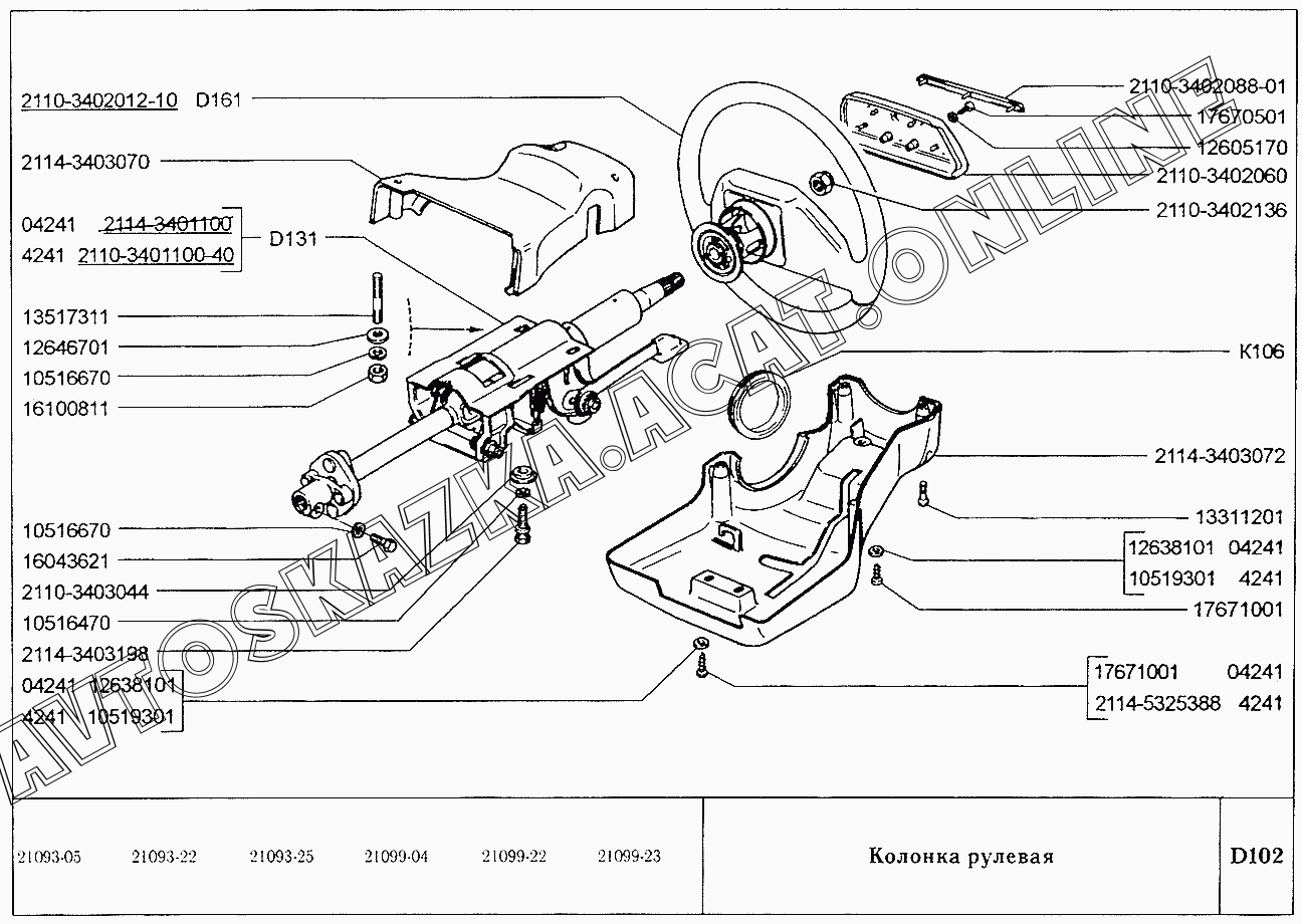 Колонка рулевая ВАЗ 2109 (2109, 21091, 21093, 21093-01, 21093-02, 21093-05, 21096, 21097, 21098, 21098-01 (карб.), 21093-20, 21093-21, 21093-22, 21093-23, 21093-24, 21093-25, 21098-22 (впрыск))