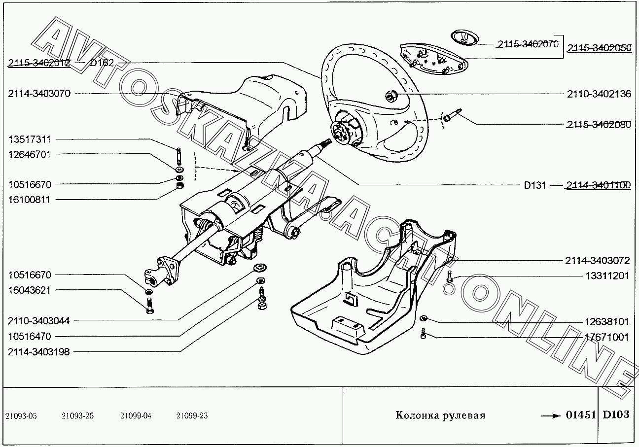 Колонка рулевая ВАЗ 2109 (2109, 21091, 21093, 21093-01, 21093-02, 21093-05, 21096, 21097, 21098, 21098-01 (карб.), 21093-20, 21093-21, 21093-22, 21093-23, 21093-24, 21093-25, 21098-22 (впрыск))
