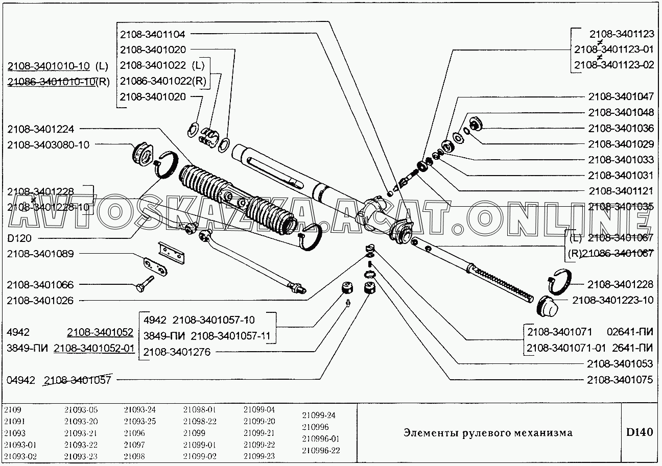 Элементы рулевого механизма ВАЗ 2109 (2109, 21091, 21093, 21093-01, 21093-02, 21093-05, 21096, 21097, 21098, 21098-01 (карб.), 21093-20, 21093-21, 21093-22, 21093-23, 21093-24, 21093-25, 21098-22 (впрыск))