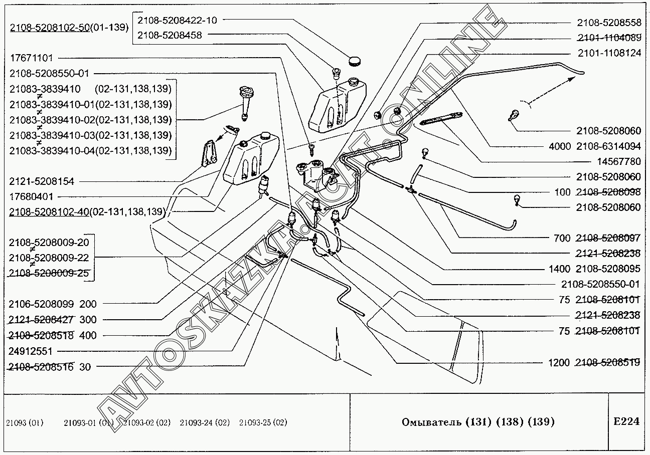 Омыватель (131,138,139) ВАЗ 2109 (2109, 21091, 21093, 21093-01, 21093-02, 21093-05, 21096, 21097, 21098, 21098-01 (карб.), 21093-20, 21093-21, 21093-22, 21093-23, 21093-24, 21093-25, 21098-22 (впрыск))
