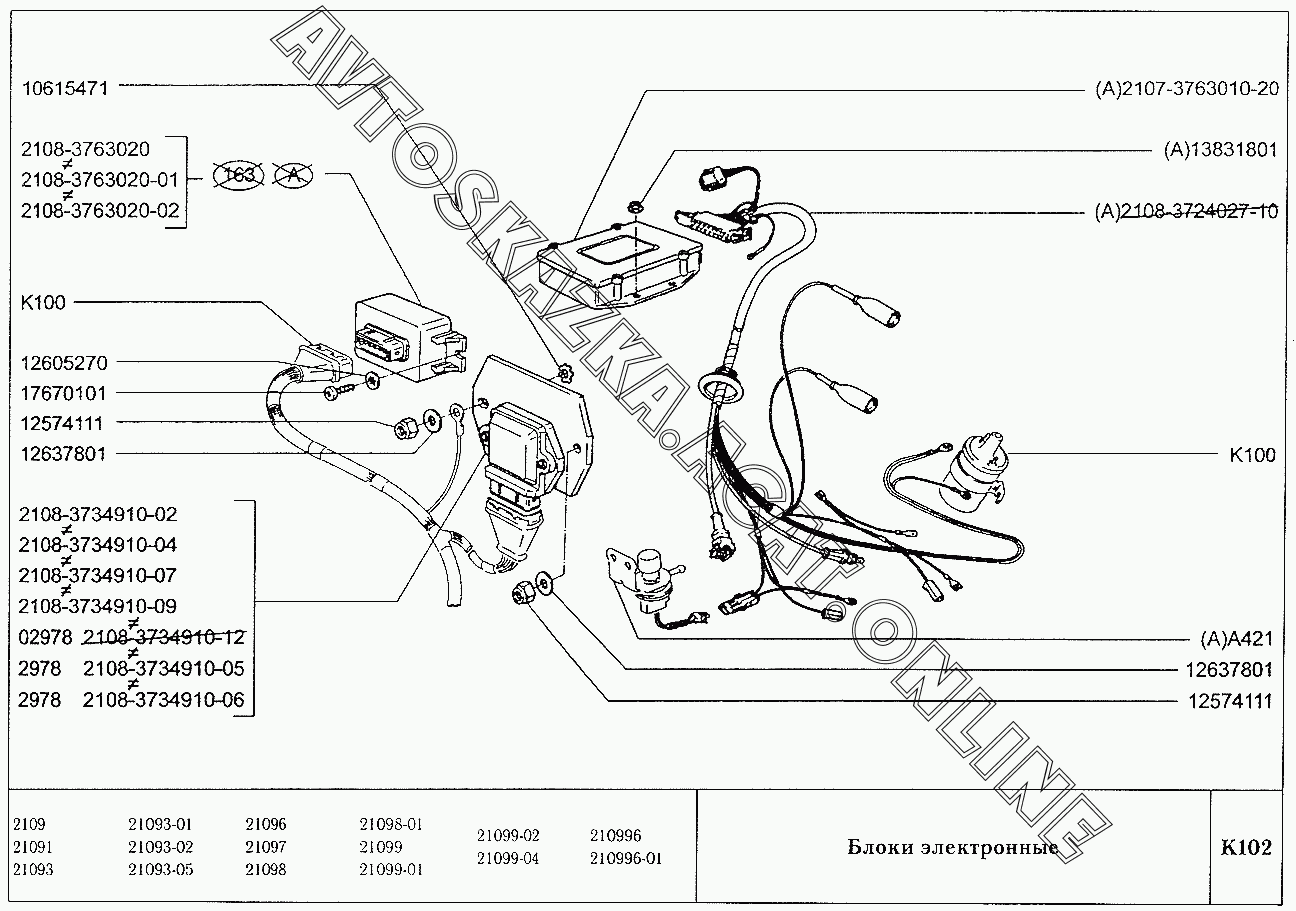 Блоки электронные ВАЗ 2109 (2109, 21091, 21093, 21093-01, 21093-02, 21093-05, 21096, 21097, 21098, 21098-01 (карб.), 21093-20, 21093-21, 21093-22, 21093-23, 21093-24, 21093-25, 21098-22 (впрыск))