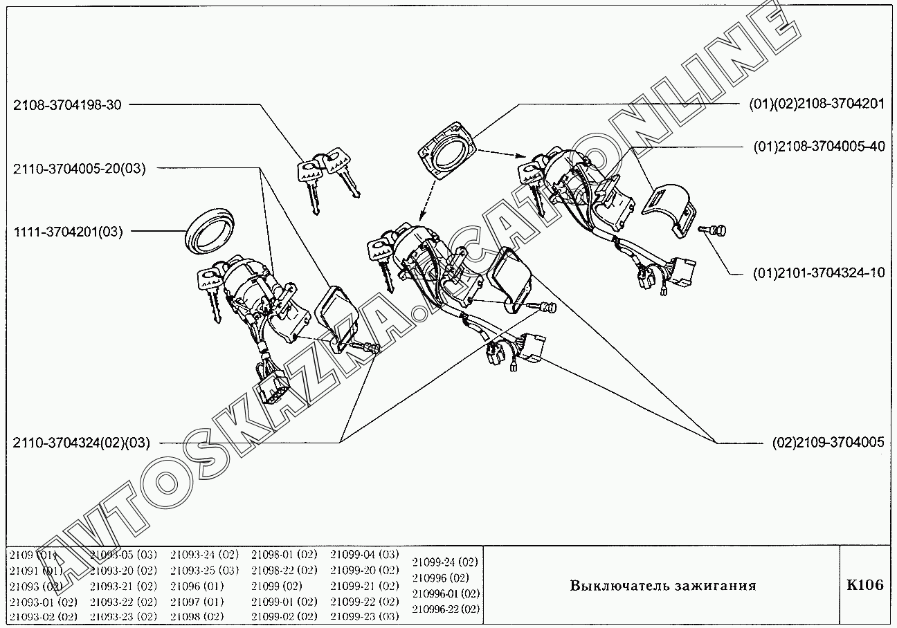 Выключатель зажигания ВАЗ 2109 (2109, 21091, 21093, 21093-01, 21093-02, 21093-05, 21096, 21097, 21098, 21098-01 (карб.), 21093-20, 21093-21, 21093-22, 21093-23, 21093-24, 21093-25, 21098-22 (впрыск))