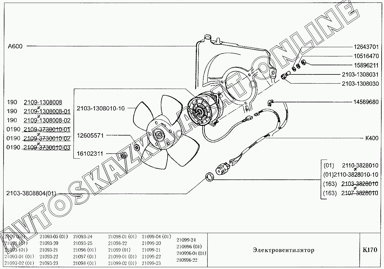 Электровентилятор ВАЗ 2109 (2109, 21091, 21093, 21093-01, 21093-02, 21093-05, 21096, 21097, 21098, 21098-01 (карб.), 21093-20, 21093-21, 21093-22, 21093-23, 21093-24, 21093-25, 21098-22 (впрыск))