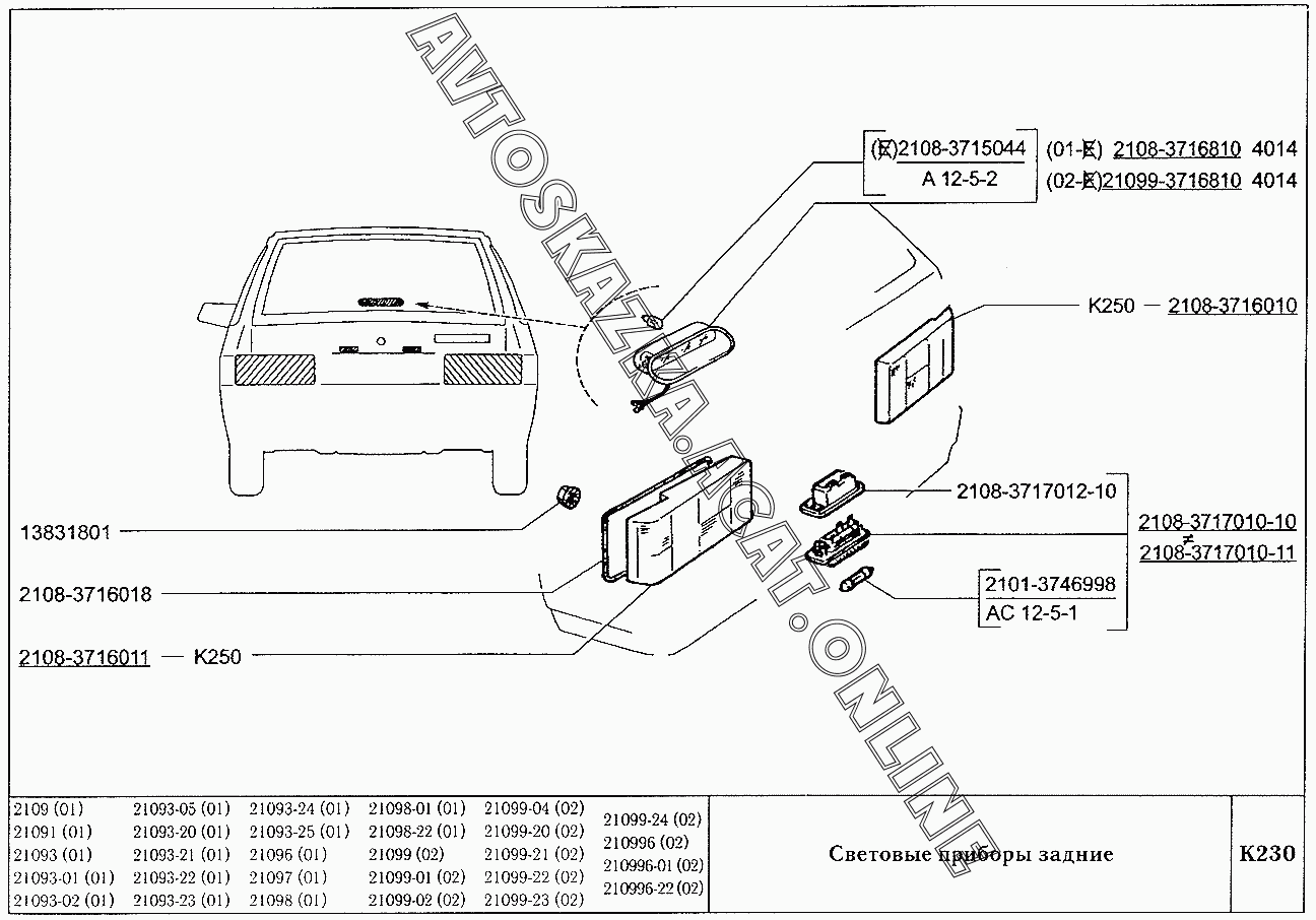 Световые приборы задние ВАЗ 2109 (2109, 21091, 21093, 21093-01, 21093-02, 21093-05, 21096, 21097, 21098, 21098-01 (карб.), 21093-20, 21093-21, 21093-22, 21093-23, 21093-24, 21093-25, 21098-22 (впрыск))