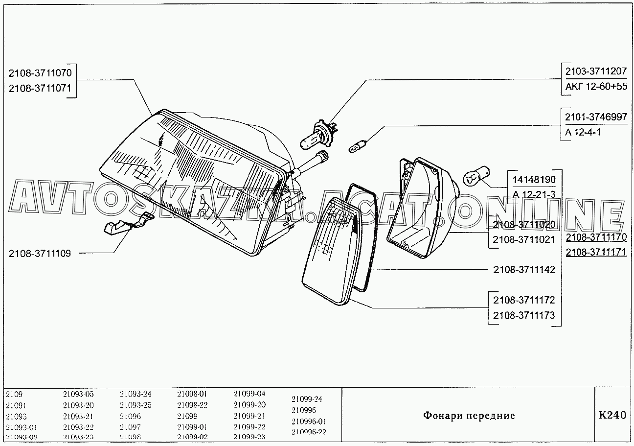 Фонари передние ВАЗ 2109 (2109, 21091, 21093, 21093-01, 21093-02, 21093-05, 21096, 21097, 21098, 21098-01 (карб.), 21093-20, 21093-21, 21093-22, 21093-23, 21093-24, 21093-25, 21098-22 (впрыск))