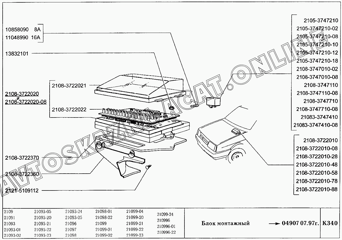 Блок монтажный ВАЗ 2109 (2109, 21091, 21093, 21093-01, 21093-02, 21093-05, 21096, 21097, 21098, 21098-01 (карб.), 21093-20, 21093-21, 21093-22, 21093-23, 21093-24, 21093-25, 21098-22 (впрыск))
