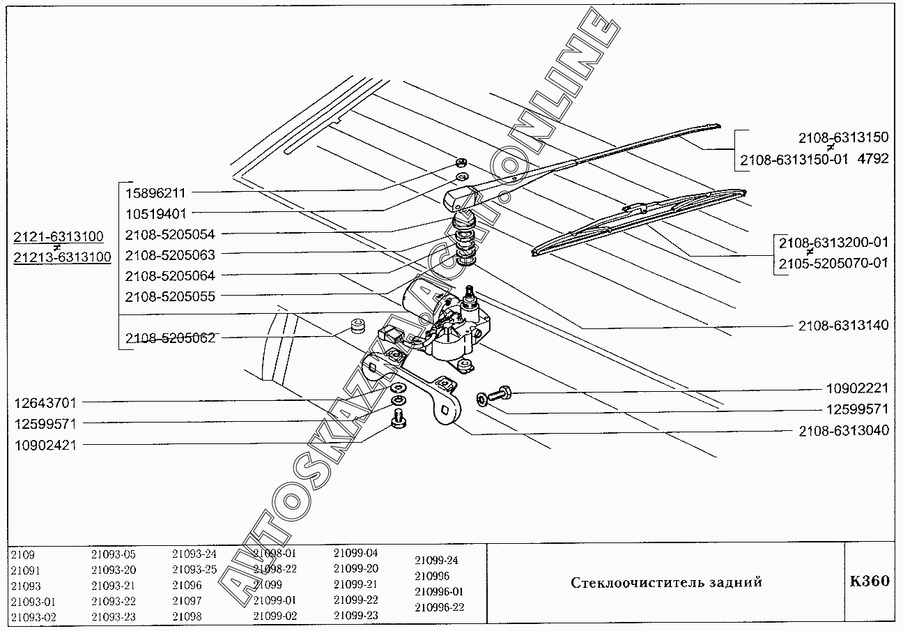 Стеклоочиститель задний ВАЗ 2109 (2109, 21091, 21093, 21093-01, 21093-02, 21093-05, 21096, 21097, 21098, 21098-01 (карб.), 21093-20, 21093-21, 21093-22, 21093-23, 21093-24, 21093-25, 21098-22 (впрыск))