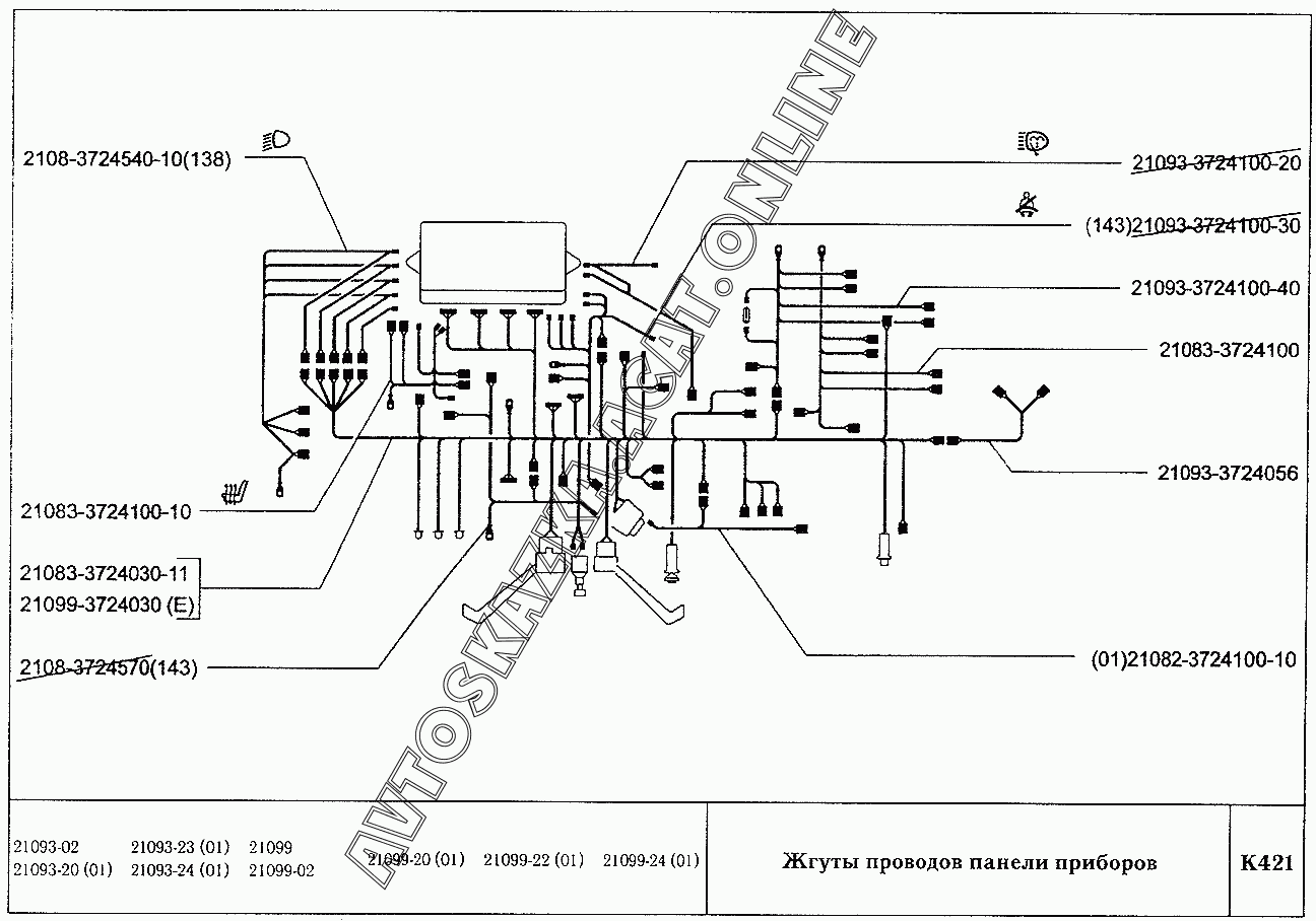 Жгуты проводов панели приборов ВАЗ 2109 (2109, 21091, 21093, 21093-01, 21093-02, 21093-05, 21096, 21097, 21098, 21098-01 (карб.), 21093-20, 21093-21, 21093-22, 21093-23, 21093-24, 21093-25, 21098-22 (впрыск))