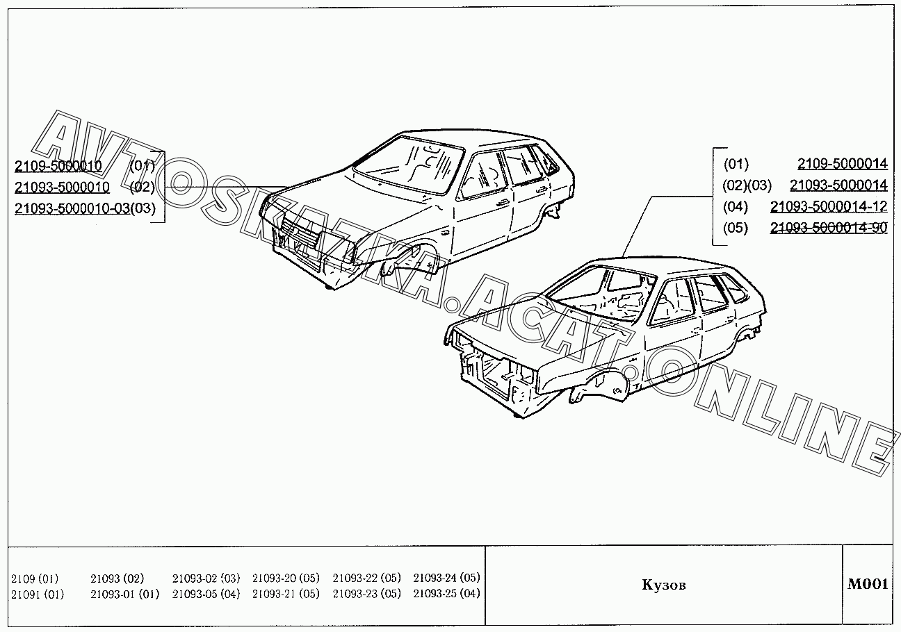 Кузов ВАЗ 2109 (2109, 21091, 21093, 21093-01, 21093-02, 21093-05, 21096, 21097, 21098, 21098-01 (карб.), 21093-20, 21093-21, 21093-22, 21093-23, 21093-24, 21093-25, 21098-22 (впрыск))