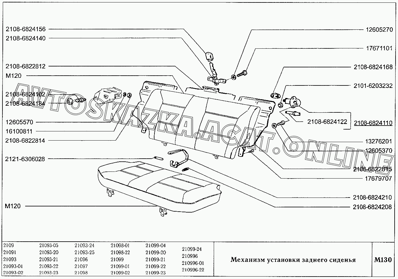 Механизм установки заднего сиденья ВАЗ 2109 (2109, 21091, 21093, 21093-01, 21093-02, 21093-05, 21096, 21097, 21098, 21098-01 (карб.), 21093-20, 21093-21, 21093-22, 21093-23, 21093-24, 21093-25, 21098-22 (впрыск))