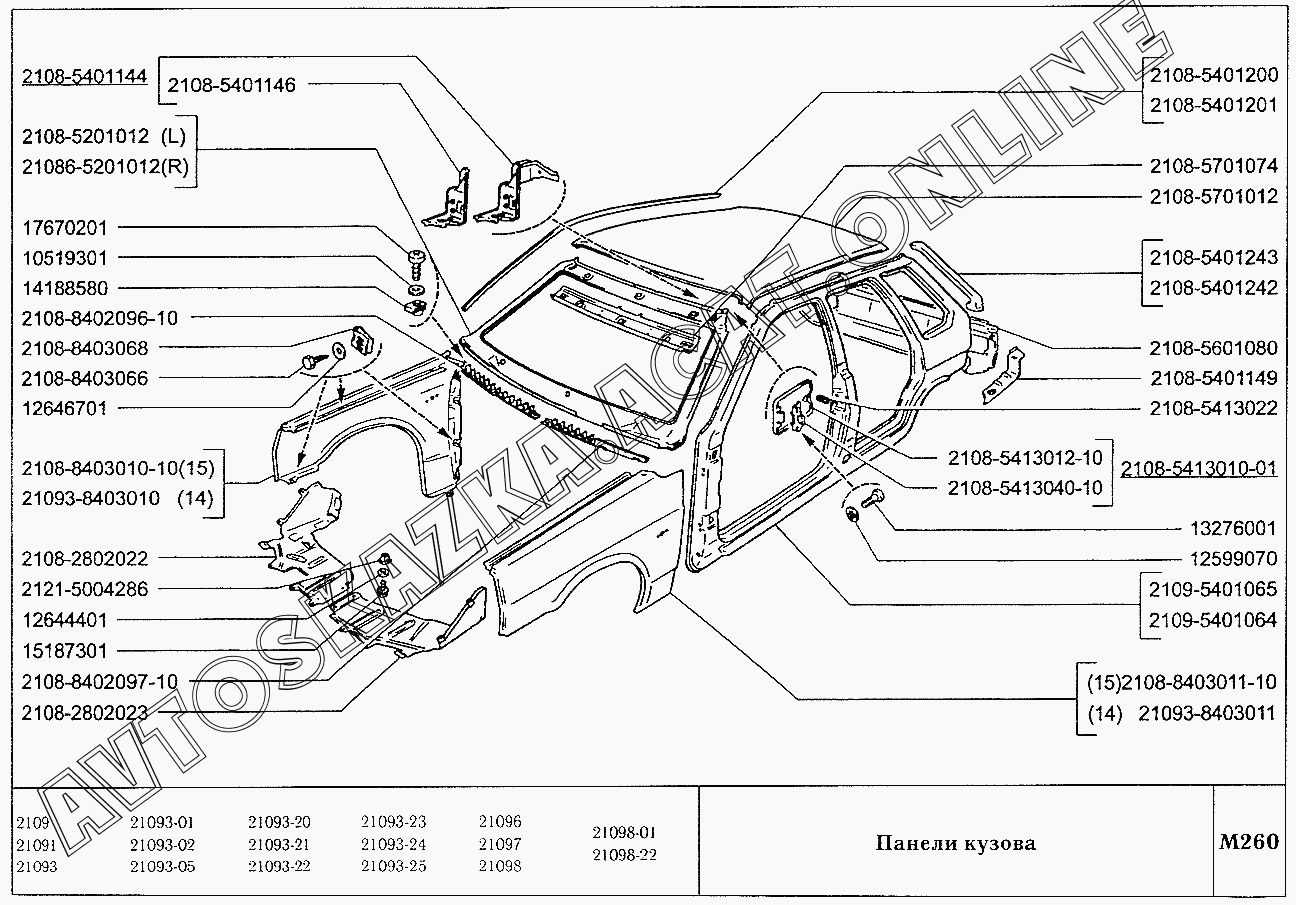 Панели кузова ВАЗ 2109 (2109, 21091, 21093, 21093-01, 21093-02, 21093-05, 21096, 21097, 21098, 21098-01 (карб.), 21093-20, 21093-21, 21093-22, 21093-23, 21093-24, 21093-25, 21098-22 (впрыск))